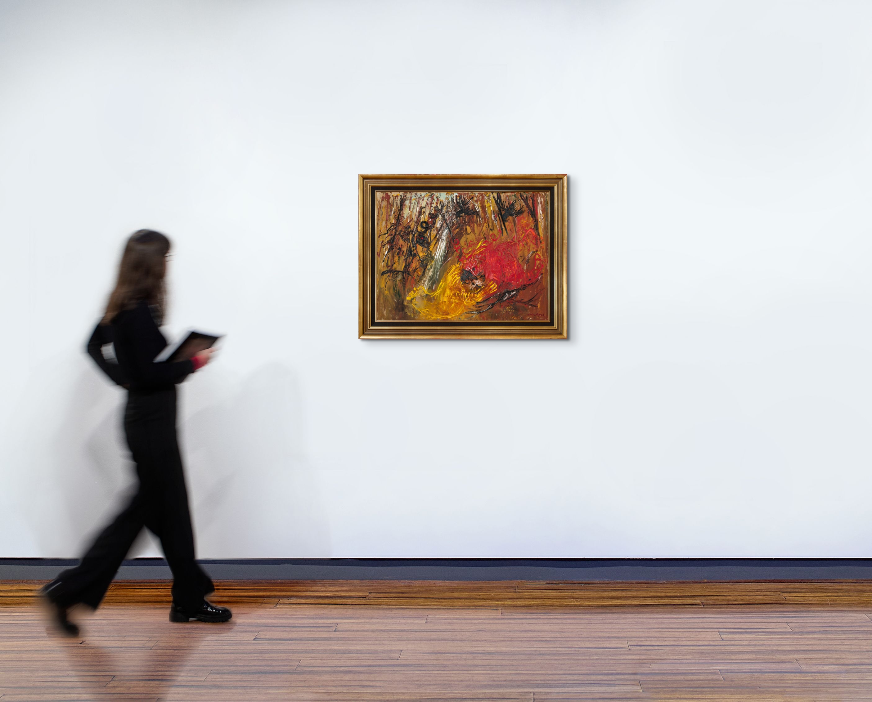 Recounted in the Gospel of Luke, the parable of the Prodigal Son narrates the tale of a son who beseeched his father to bequeath him his share of the family estate early so he could travel and make his fortune. Seduced by worldly vices in foreign lands, thus he subsequently squandered his wealth on wild living, falling into poverty and forced to become a swineherd. Starving and repentant, the son eventually returns to his father seeking forgiveness, which is readily granted by the magnanimous patriarch. Featuring this joyful reunion of father and son, the present painting nevertheless encapsulates a marked departure from Boyd’s earlier, Old Master-inspired treatment of the episode – both in its iconography and stylistic approach. Offering a highly expressive, gestural interpretation that employs several signature motifs all fused within a rolling bush landscape, the composition would seem, rather, more reminiscent of the artist’s iconic Nebuchadnezzar series which he commenced in 1966 and exhibited in Australia and the United Kingdom in 1968 and 1969 respectively.