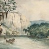 Thomas Balcombe joined the Surveyor-General’s Department, Sydney in 1830, as a draftsman under Major Thomas Mitchell. He was later promoted to field surveyor and remained in the department for the rest of his life. He joined Major Mitchell’s Third Expedition to the Murray River area in 1836 with Mitchell being the first European to discover (and name) the Glenelg River. The river is the longest in south-west Victoria stretching 350 kilometres from the Grampians to the coast at Discovery Bay, Nelson, near the South Australian border. The Glenelg was important to Indigenous Australians. It formed the traditional tribal boundaries for the nomadic Bungandidj people (western bank) and Gunditjmara people (eastern bank) both from two distinct language groups. Balcombe made sketches on the trip that formed the basis of later paintings such as our watercolour dated 1861. An engraving of the same subject appears in Mitchell’s published account of his explorations – Three Expeditions Into the Interior of Eastern Australia: with descriptions of the recently explored region of Australia Felix, and of the present colony of New South Wales, London, 1839 – with Major Mitchell cited as the artist. It is possible that this and other engravings illustrated in the publication and attributed to Mitchell were based on Thomas Balcombe’s expedition sketches.