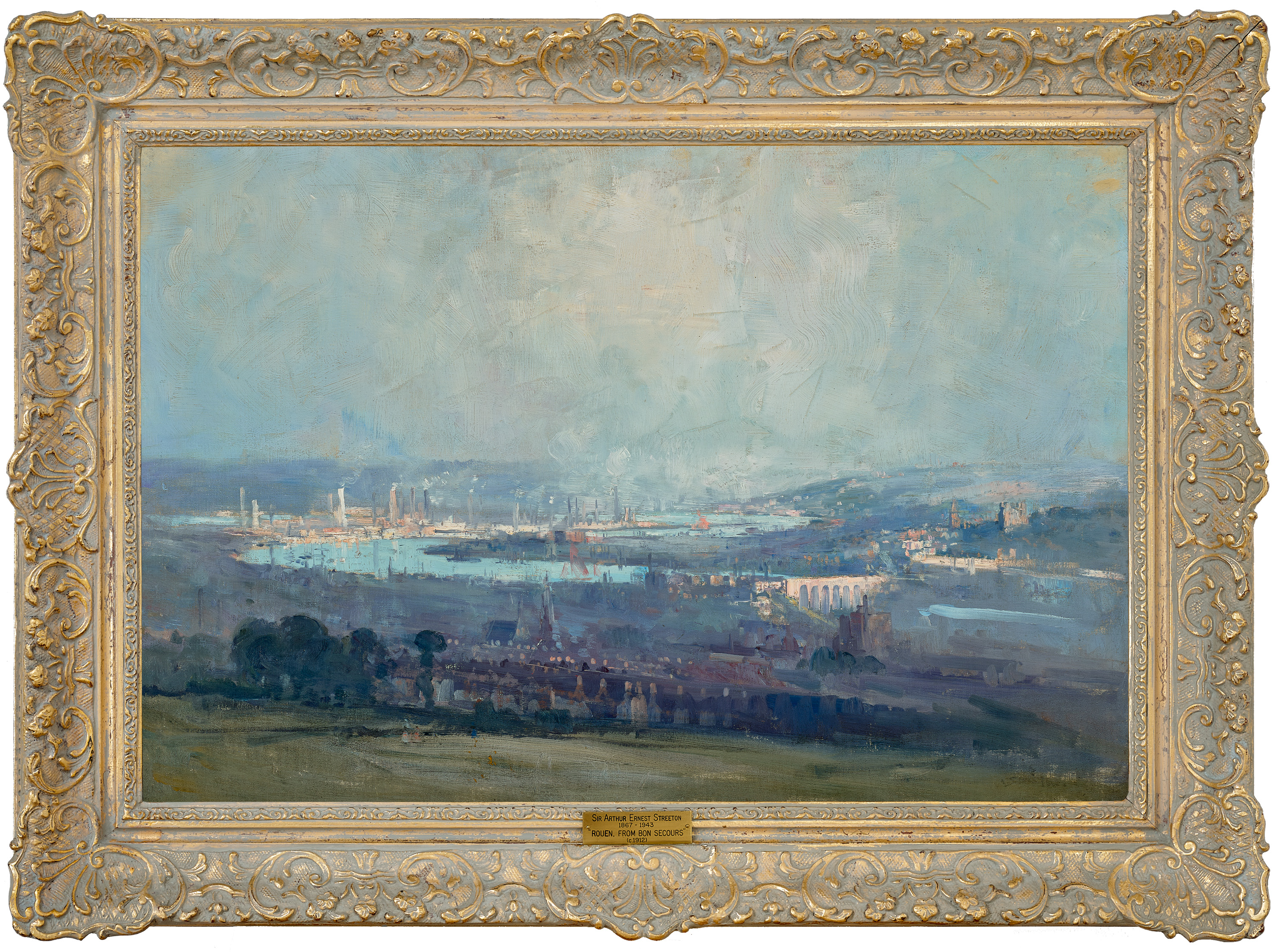 bears inscription on plaque attached to frame: Sir Arthur Streeton / “ROUEN, FROM BON SECOURS” / (c.1912)
