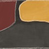 Painted for Waringarri Arts in Kununurra in the mid-1990s, Ruby Plains Station, c.1992 – 93, is typical of Rover’s paintings where layers of natural pigments affixed with a synthetic binder are outlined by a tracery of white dots painted with huntite, a white chalky pigment used in ceremony and rock art. The work shows a planar view of landscape where a large black expanse narrows between two imposing irregular forms infilled with yellow and red pigments that recall the rocky outcrops of the Kimberley plateau, while at the same time evoking ancestral paths and delineating areas of country.