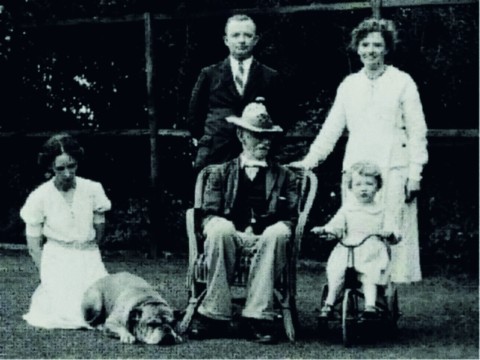 Grace Cossington Smith (right) with her sister Diddy, dog Rex (Krinkley Konks), brother Gordon, father Ernest and young niece Ann (Mills) at Cossington, in Turramurra, in 1937. courtesy of the artist’s estate.