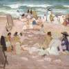 When Ethel Carrick visited Sydney in 1913, some of her best works were inspired by Manly. Her husband, Emanuel Phillips Fox had been delayed in Melbourne by a request from the Historic Memorials Commission to paint the portrait of Prime Minister Andrew Fisher. Carrick busied herself painting the Harbour and other Sydney scenes, before Fox arrived in mid-September to follow suit. It was springtime and Sydney was sparkling, judging by the views they painted. Carrick’s November solo show at Anthony Hordern’s Fine Art Gallery featured Corner of Circular Quay, On Balmoral Beach, Off Cremorne Point and twelve Notes on Sydney Harbor. They inspired the Sydney Morning Herald art critic to write of Carrick and her paintings in terms of ‘joyous vivacity’, delighting in ‘a prominence of light and colour’. ‘Painting after painting [he added] display an almost child-like love for light, movement, the interplay of brilliant hues’.1 As evidenced by the sunlit atmosphere and feeling of freedom, Carrick and Fox loved the beaches of Sydney, possibly even more than those of the fashionable French resorts of Trouville and Saint-Malô.