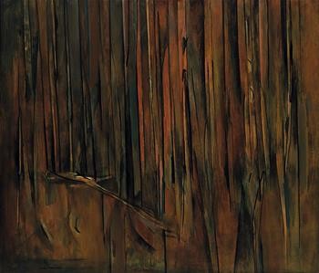The textures in Sapling Forest evoke the gnarled surface of the observed motif, a mannerist touch which we see for the first time in the early 60s. ‘Williams worked up the textures of these paintings so that they recall in touch the roughness of bark or wood… an almost literal equivalence between the weight and density of paint and the weight and density of the motif.’1