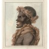 A magnificent and detailed portrait of a Tasmanian man in striking profile. Although Péron and many of the other journalists on board noted that a large number of the Tasmanian men they interviewed were naked, the present example shows a mature and initiated man not only wearing the familiar kangaroo-skin cloak, but with a matched headband as well.