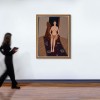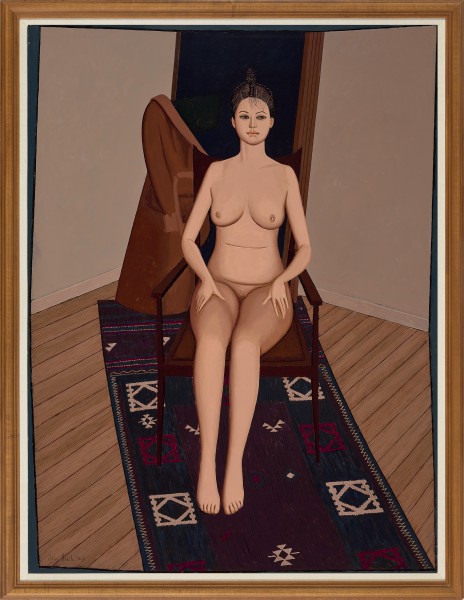 Like all of the nudes from this time, Seated nude with screen was painted in Brack’s studio and features its distinctive timber floorboards and unadorned walls, as well as a Persian carpet, which is rendered in characteristically intricate detail. Helen Brack interprets these carpets as symbolising the world of men and in the context of images where the subject is always female, this has a particular relevance.5