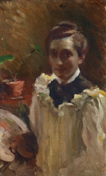 Self Portrait with Palette, c. 1920s, oil on canvas on board, 31.0 x 24.0 cm, private collection