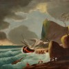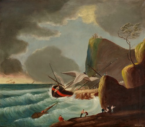 SHIPWRECK ON A ROCKY COAST WITH FIGURES, 1840