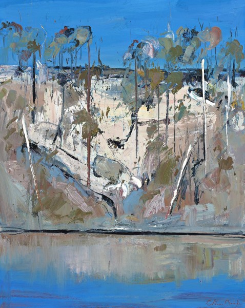 The majestic soaring cliffs which bordered the Shoalhaven remained a perennial image of this series, with the sunbathed Nowra sandstone standing timelessly above the tranquil river. As Janet McKenzie has observed; 'The natural beauty of the Shoalhaven area caused Boyd to marvel constantly. His paintings are a celebration of the grandeur and wonder of Nature. It is to Boyd's credit that a single landscape can inspire such diversity of work. He gives us the impression that in life there are infinite possibilities, as long as we train ourselves to see.’1 In his 1970s paintings of the Shoalhaven River, Boyd depicted the sandstone escarpments and untamed shrubbery using crisp lines and fine detail. However later works, including Shoalhaven River, c.1995, employed a looser painterly technique, as the artist grew to recognise the subtleties of the region. As in the present work, Boyd would at times paint with his hands, a method which enabled greater intimacy with and devotion to the subject. This physical act allowed the artist to paint with strong intent, capturing the essence of the landscape and its many nuances.