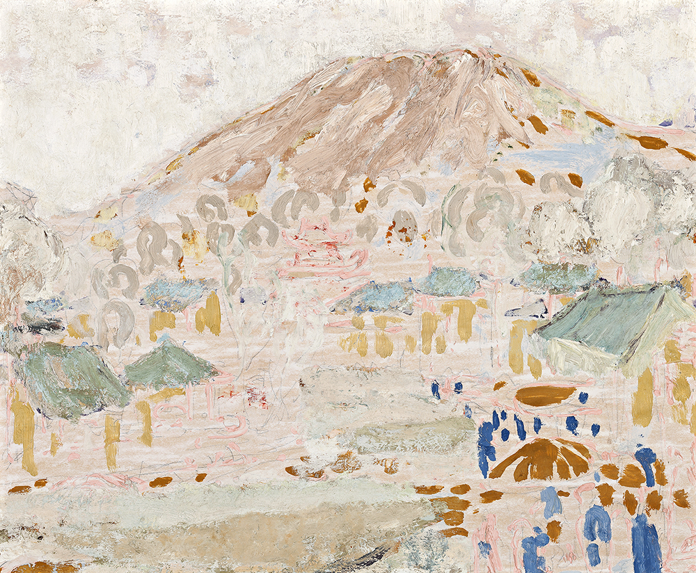 From River Hangchow, 1933 in the collection of the Art Gallery of New South Wales, through Near Hangchow, 1938 in the collection of the National Gallery of Australia, Canberra, to River at Hangchow, 1945 – 47 (Deutscher and Hackett, 17 November 2010, lot 1), Fairweather returned to the subject of Hangchow many times. With sketches or conjured up from visually rich memories, they were painted in such diverse places as Buleleng at Bali, Manila and Melbourne. In Sin Ging Village, 1936 Oriental serenity gives way to dancing strokes of the paint-laden brush, pinks captivating the eye, especially when contrasted with deep blues and blue-greens. With the unpainted ground growing in importance as part of the finished painting, description is abandoned for suggestion, lyricism blending with bustle. Sin Ging Village embraces life and meditation in the moment, its crumbly, chalky surfaces and freedom of drawing denying any hint of lack of substance. Form grows out of calligraphy in that unique blend of East and West that characterizes Fairweather’s art at this time. In his review of Fairweather’s 1937 exhibition, The Times critic observed that he: ‘…is not an artist who “leaps to the eye,” but he is very well worth meeting in his reserves.’3 If impressionistic in imagery and momentary of vision, Fairweather’s art is serenely abiding.