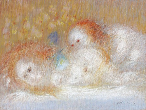 SLEEPING WOMAN WITH DRAGONFLY AND WATCHING FIGURE, c.1964