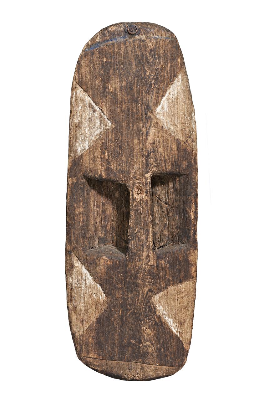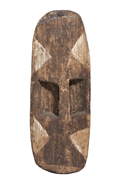 carved fig wood with geometric designs filled with natural earth pigments