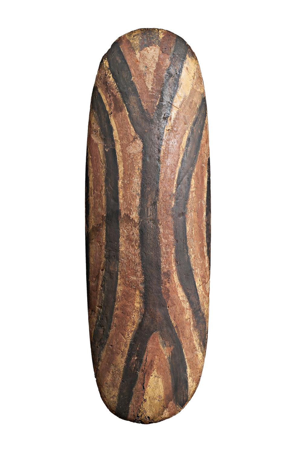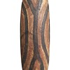 carved and shaped hardwood with geometric designs infilled with natural earth pigments, the reverse with a deep cut lug handle