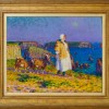 A contemporary photograph shows Marianna dressed in local costume, posing on the cliff top as Russell, seated at an easel in the foreground, works on the larger, closely related painting, Bergère en blanc avec des chèvres, c.1897 (Musée d’Orsay, France). While the goats do not appear in the photograph, they were family pets and a familiar element of the Russell’s cliff-top home, which consisted of a large stone house and expansive garden, as well as various outbuildings including a studio that opened directly out to the ocean. In addition to highlighting the importance for Russell of working directly from the subject, the photograph and a comparison of the two paintings reveals aspects of his working method; changes in perspective and scale, varied use of colour and compositional choices that in the larger painting, result in a stronger emphasis on the figure who is depicted as an almost heroic representation of traditional rural life. Such subject matter reflects the prevailing influence of Barbizon School painter Jean-François Millet, whose paintings celebrated the nobility of peasant workers and their labour, and a growing awareness at the end of the nineteenth century that this way of life was disappearing. According to Ann Galbally, ‘It was against a background of romanticization of the primitive that [Russell] moved his wife and family to Belle-Île … and to ultimately forswear subject-painting, decorative art, even portrait painting in favour of a painterly identification with his rural surroundings.’11