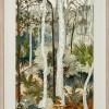 Continuing an enduring tradition of picturing an untouched natural wilderness in Western art, Spotted Gums belongs to a suite of botanical works drawn from life in the endangered, sub-tropical bush around the Stella James House in Avalon, on Guringai country on Sydney’s Northern Beaches.3 The artist and her first husband, Peter Crayford, lived in this heritage-listed Walter Burley Griffin house over the summer of 1999 – 2000. Enclosed by tall stands of Pittwater Spotted Gums and angophora, the house overlooks thirty thousand square metres of open forest on the slopes below. This pristine vegetation was an enticing pictorial subject for Campbell, appearing in several woodblocks and prints between 1999 – 2000, often featuring a combination of Pittwater’s distinctive eucalypts, cycads, and Cabbage Palms.