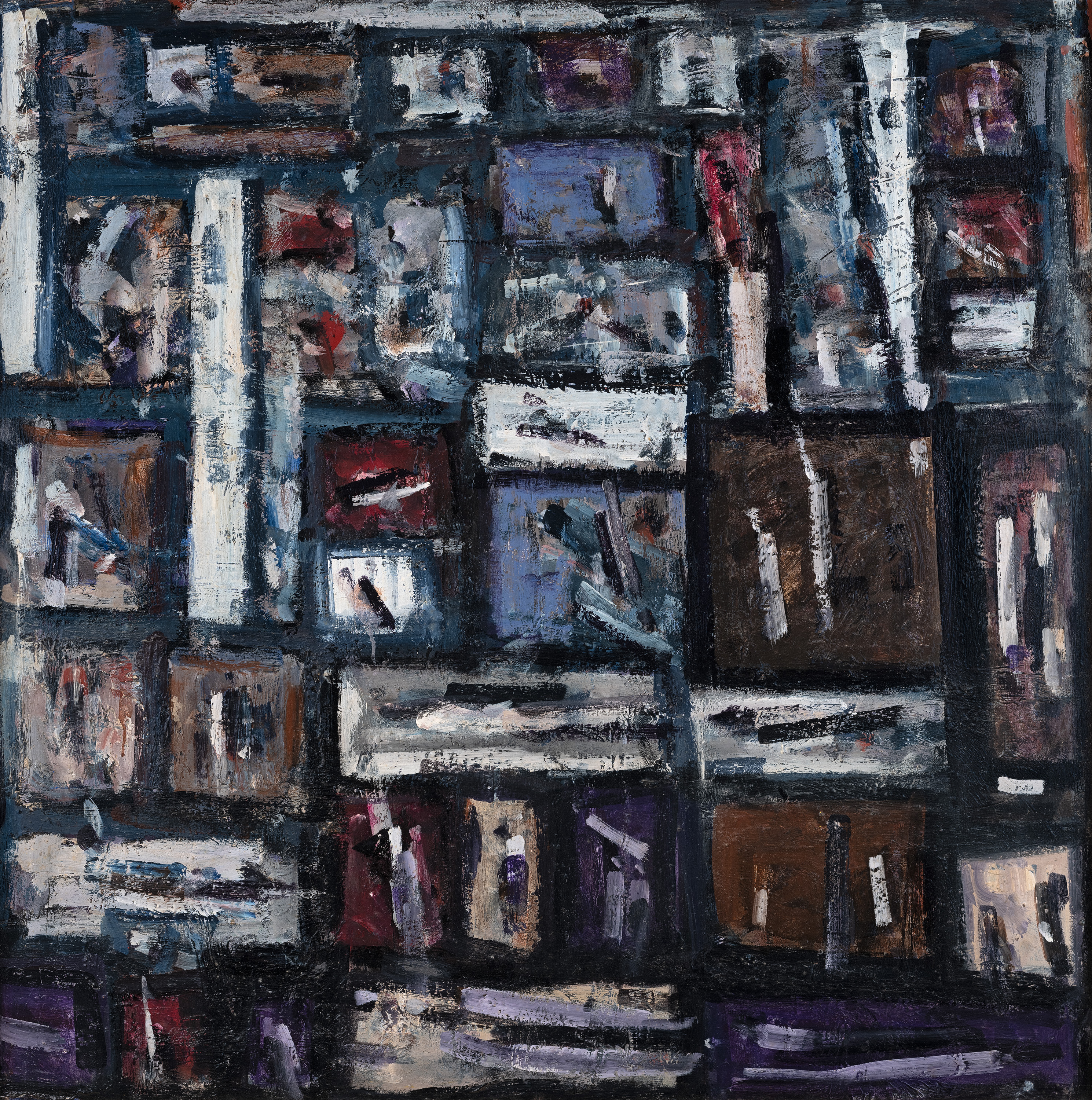 inscribed with artist’s name and title on typed label verso: 25. SQUARE TO SQUARE / ROGER KEMP.