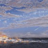 While continuing this interest in the four elements and the power of life which they embody, Starlight Over the Plain (Night Coals), 2008 nevertheless reveals a significant shift in the artist’s vision during the opening decade of the new millennium. Where previously his interpretations had been literal and direct, now his treatment is more subdued, reflective and abstract, with fire (the burning logs positioned lower left) occupying an almost secondary role to the dazzling celestial sky and billowing, voluminous clouds that cast long shadows upon the expansive plain below. Elegant and minimalist, indeed the nocturnal scene offers an arguably more sophisticated exploration of the emotive, melancholic mood that has always pervaded Storrier’s oeuvre, drawing upon the symbolism of the fading light of day as a metaphor for change or the fin de siècle, end of an era. Similarly, the juxtaposition of fire with an entirely different great vastness here (infinite celestial skies and untraversed bodies of water), no doubt suggests further allusions to evolution, the passing of time and the grandeur of decay in the same vein as the traditional vanitas still life. As Storrier himself muses, '... there is a relationship between fecundity and mortality, between something that is wet and something that is burning. These are primal poetic qualities that do not change in terms of the human spirit’.2