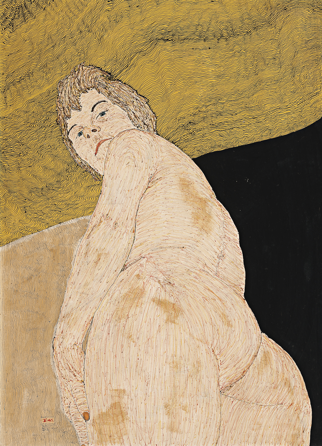 inscribed verso: To / Mr. Watters / of Watters Gallery / Richard Larter / Lot 2 Bringelly Road / Luddenham / NSW / Title: “Frig You Mouldy / Daddy” / or / “BEHOLDAD / A SALLOW NUDE” / “STEATOPYGIA / BE BLOWED / MR. BAZIN”