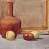 ...this modest watercolour is amusingly inscribed lower right ‘Han Van Meegeren' 1948’. The infamous Han van Meegeren 1889 – 1947, was a Dutch painter and portraitist. However Van Meegeren was best known as an exquisite forger whose copies of Dutch masters including Vermeer were very convincing. This light hearted Still Life by Jeffrey Smart, painted the year after Van Meegeren’s death, is remembered as a homage in jest to the great forgers achievements.