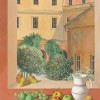 The arrangement of an offering of fruit on the windowsill, the still life subject of this painting, is simple and evocative, bringing to mind the work of the French Post-Impressionist Cézanne. The waxy surfaces of the fruits are immediately apparent against the coarse texture of the window frame and wooden table. Presenting a convincing facsimile of a physical window frame, O’Brien’s Still Life on a Terrace seems to radiate the warmth and fragrance of an Italian summer. In this calm abundance, O’Brien has captured the serenity of a spiritual life and invites its quiet contemplation.