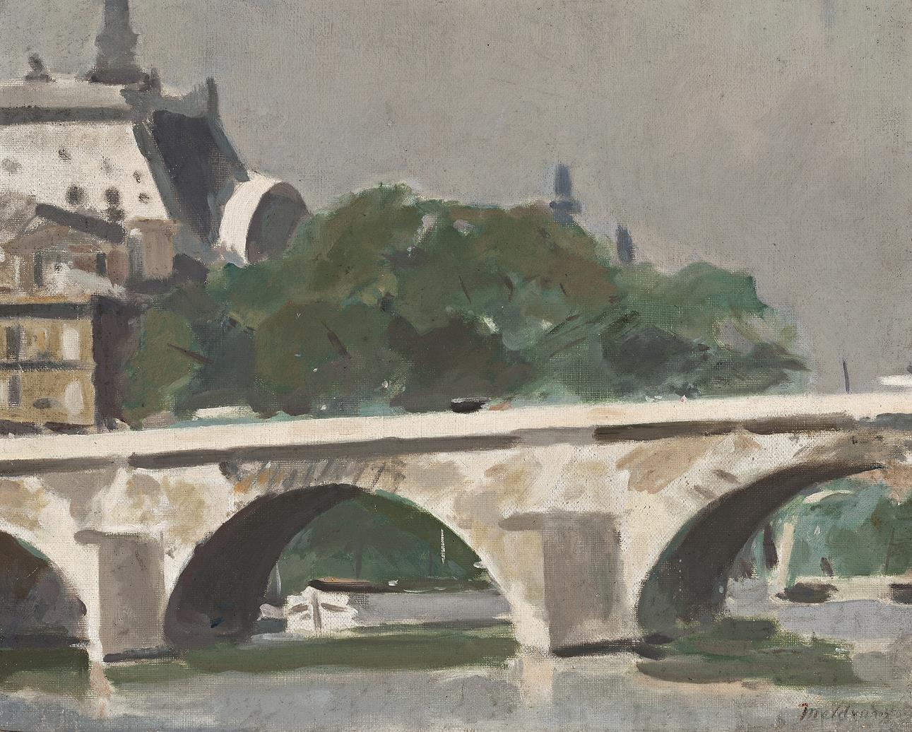 signed, dated, and inscribed with title verso: Max Meldrum / STUDY LE PONT ROYAL PARIS / JULLIET 1929