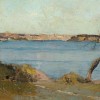 Sydney Long is renowned for his pastoral fantasies Spirit of the plains, 1897 and Pan, 1898 – symbolist masterworks that are amongst the Art Gallery of New South Wales’ most popular paintings. As a gifted student under Julian Ashton, Long shared a studio with George Lambert and was engaged for some years to Thea Proctor until she returned the ring and left for London in 1902. He organised an Art Union in 1905 with Pan as the prize to raise money for overseas travel, but his unscrupulous business partner made off with the funds and many of Long’s paintings, forcing the artist to spend some years painting new works to fulfil his unexpected debts. By 1907, he was almost solvent again and began to work towards fulfilling his ambition of reaching London, and it is plausible that Sydney Harbour from Cremorne Point, 1909 – 10, was one of the last works completed before he left in September 1910.
