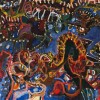 In April of 1965 Olsen held a major exhibition at the Clune Galleries. It included his first tapestry, Joie de Vivre, and two ceiling paintings, Le Soleil and La Primavera. The same year of 1965 saw Rupert Murdoch commission another, King Sun with its burst of life-giving energy. The exhibition was received with great acclaim. Daniel Thomas, writing in the Sydney Sunday Telegraph was tempted to call it 'the show of the year'.2 The Sydney Morning Herald reported 'a new height of achievement for Olsen'; and James Gleeson described his paintings as glowing with 'an uninhibited acceptance of life', paintings that 'sing and shout and exult in the joy of living.' He added, 'He drinks everything in through all his senses.'3 Olsen was on a creative high, producing some of his finest works to which one responds with the same enthusiasm with which they are imbued.