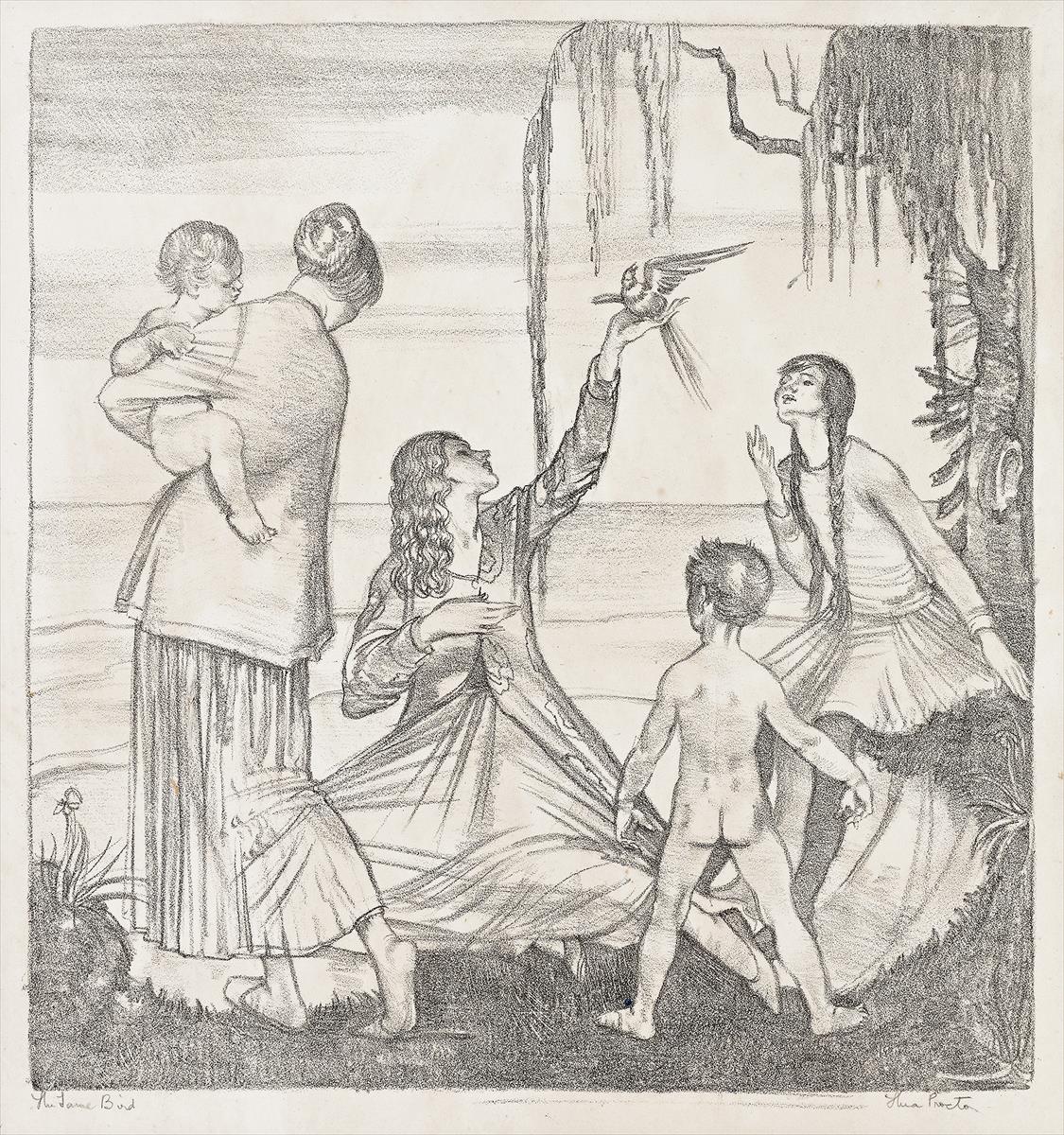 signed and inscribed with title below image: The Tame Bird Thea Proctor