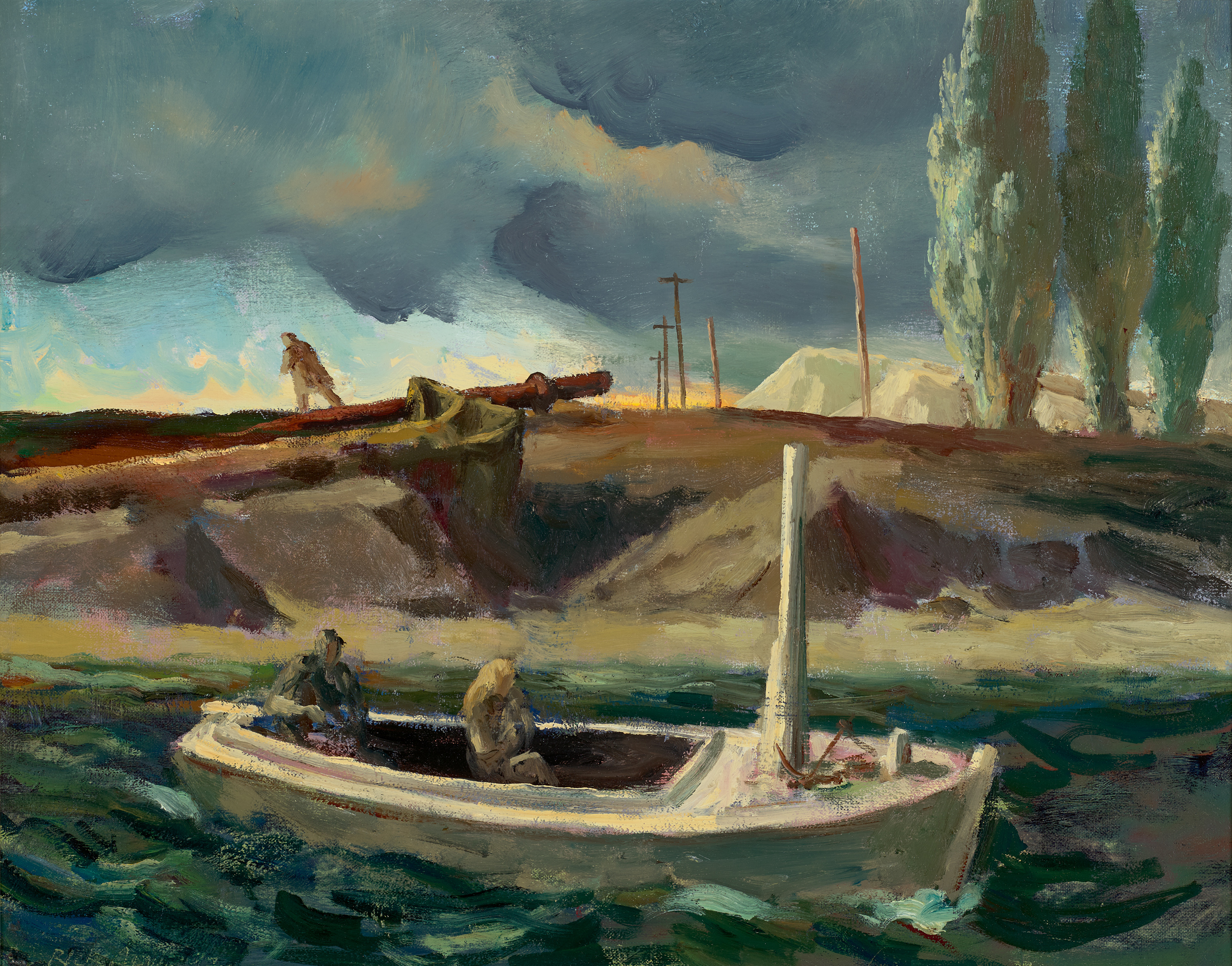 bears inscription on label attached to frame verso: Threatening Weather / Rick Amor