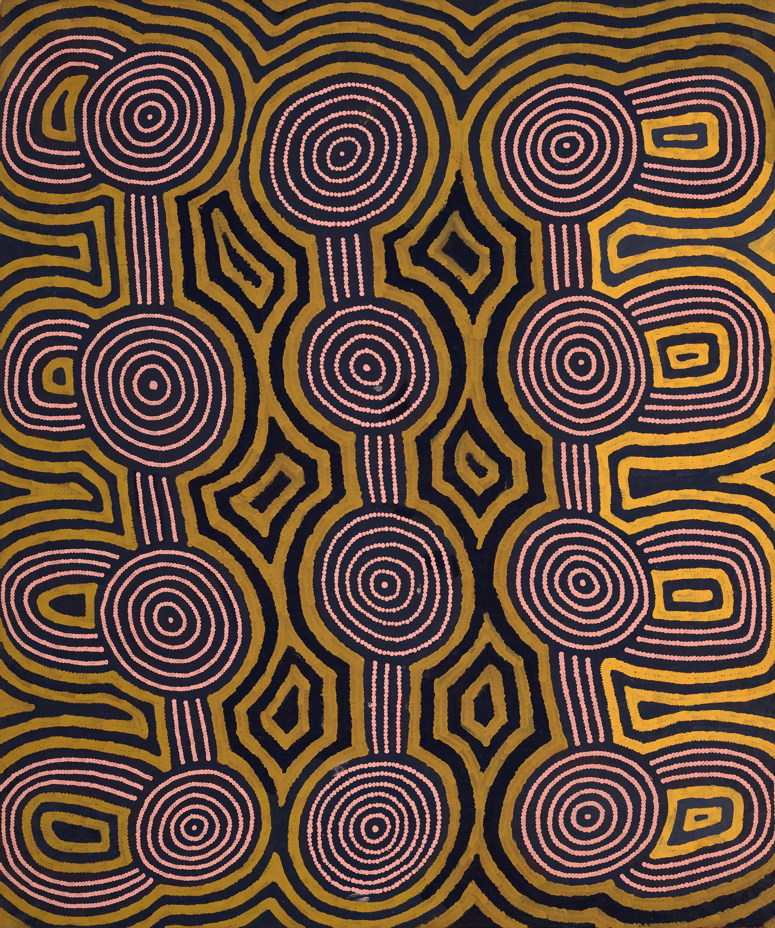 This work is accompanied by a certificate of authenticity from Papunya Tula Artists which states: ‘This painting depicts designs associated with the travels of the Tingari Men from Kintore west to the claypan site of Malka to the south-east of the Kiwirrkura Community.