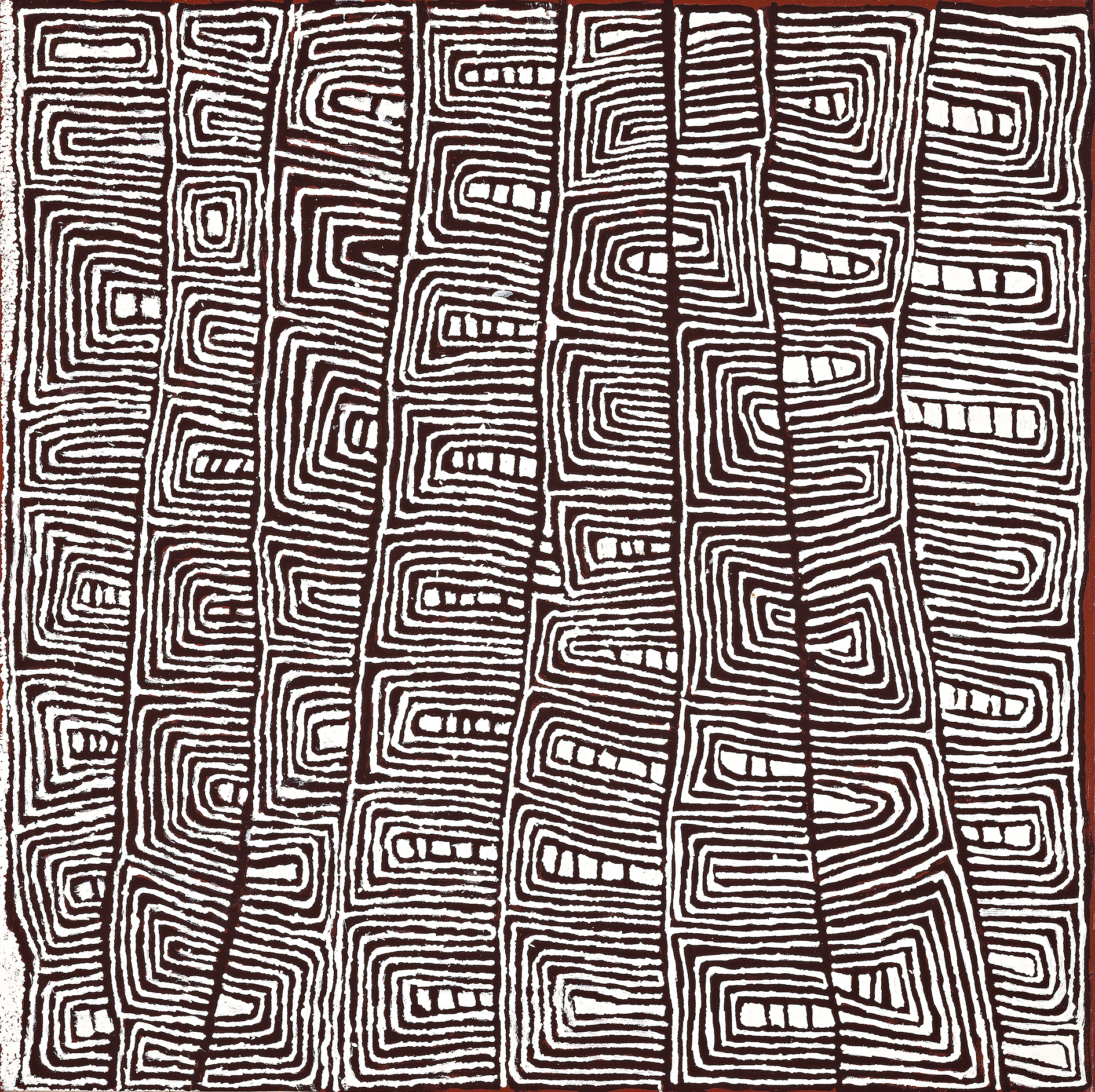 This painting is accompanied by a certificate of authenticity from Papunya Tula Artists that states: ‘This painting depicts designs associated with the soakage water site of Tjutalpi, east of the Kiwirrkura community. In mythological times a large group of Tingari Men passed through this site during their travels north to Lake Mackay.’