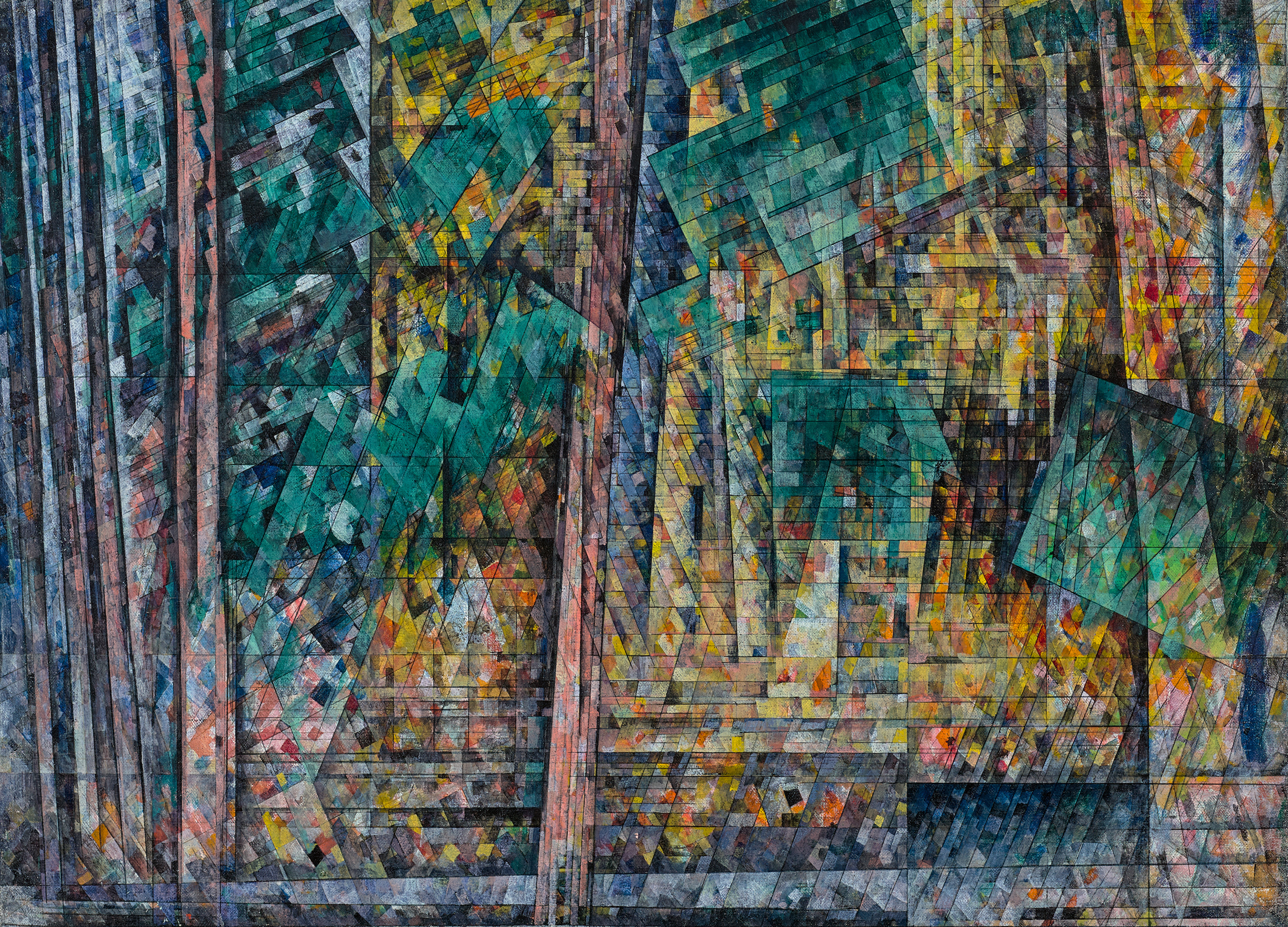 The Cézanne encounter provides a telling prelude to Trees in Quarry. The quarries at Bibémus, east of Aix-en-Provence, is where Cézanne first painted in 1895. The planar geometry, his tessellated brushwork and lineal accents are works of a distilled pictorial unity. But with Miller the idea of unity was not one of solely harmonised composition. Unity itself became the representation of the connectedness of everything, and had a philosophical underpinning.