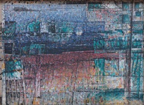With its rich complexity we find in Trees in Quarry a mature and masterful encapsulation of Miller’s intelligently steadfast pursuits. The geometric lattice arrangement of ruled straight-line ink drawing is a familiar device. Orchestrations of withheld colour and half tones flicker and settle across a meticulously worked surface of chromatic lozenges and other shapes. No element or detail is resolutely held in place to become contained and immutable. Miller often worked on paintings for years and he regarded much of his work as incomplete. It was a considered and perpetually transient working method – as though a final resolution was a daunting prospect. In Trees in Quarry, ‘borders are everywhere, but these are borders which do not confine, as that which moves beyond things is also within them… yet radiate beyond Miller’s compositional boundary.’3 The edge is especially important as it does not seek to frame and contain but alludes to a progression and extension beyond what is seen.