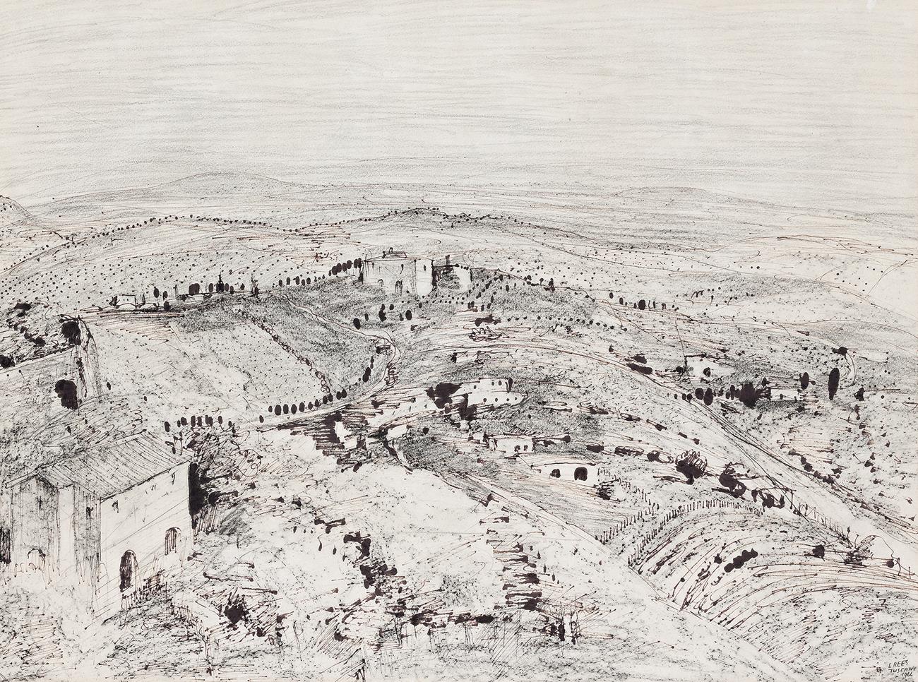 signed, dated and inscribed with title lower right: L REES / TUSCANY / 1966