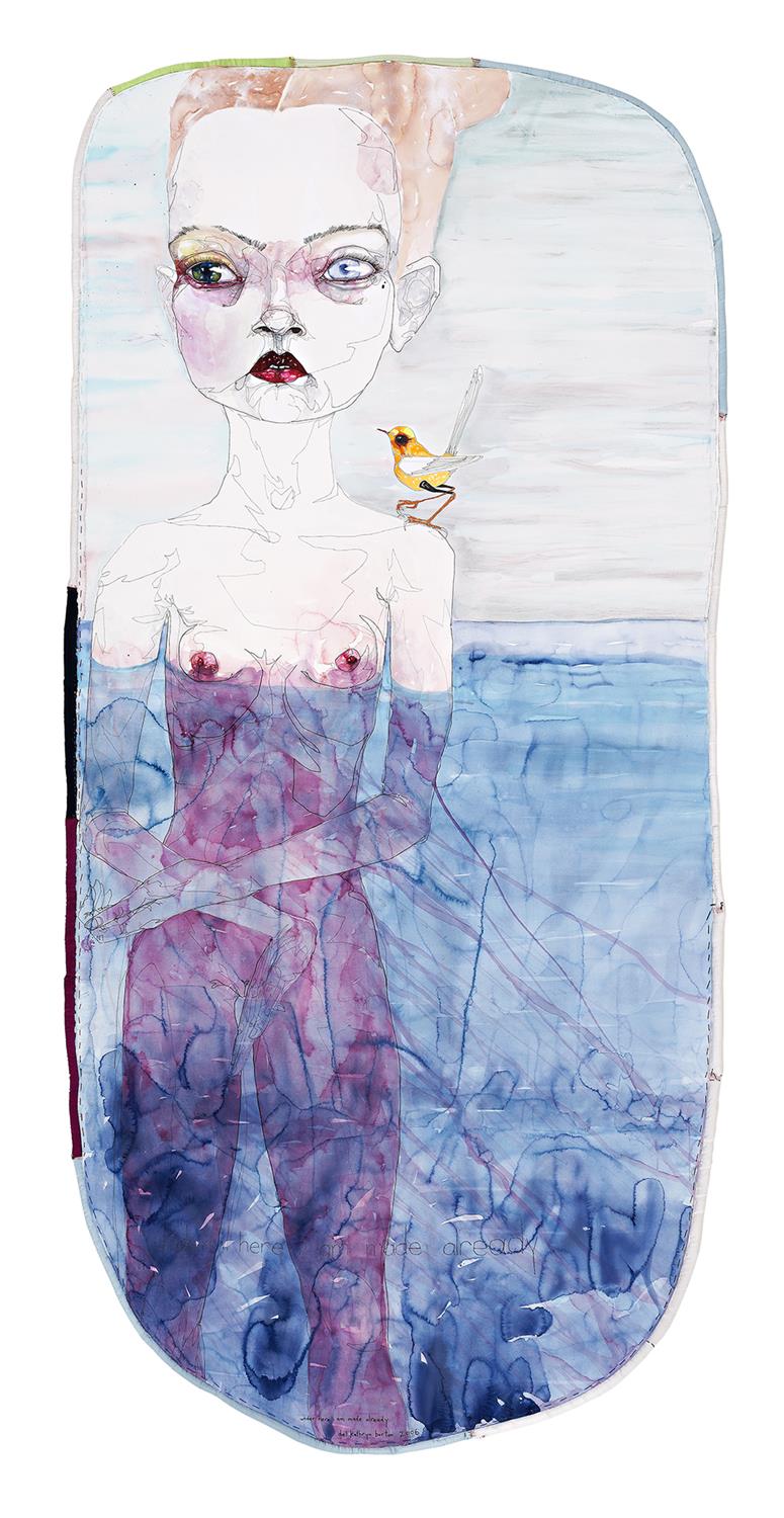 Awarded the prestigious Archibald Prize in 2008 for You are what is most beautiful about me, a tender self-portrait with her two children Kell and Arella, and again in 2013 for her pensive portrayal of actor Hugo Weaving, Del Kathryn Barton is undoubtedly one of the most critically acclaimed, eagerly sought-after figures in Australian contemporary art. Indeed, such is the extraordinary success of her exuberant signature style that she has also been invited to collaborate on several occasions with innovative fashion label, Romance Was Born, and in 2010, was commissioned by publishing house Art and Australia to create a series of works reimagining Oscar Wilde’s poignant tale, The Nightingale and the Rose. Moreover, in 2012 Barton joined forces with Australian film-maker Brendan Fletcher to translate her Nightingale works into film and in 2016, the duo won an Australian Directors Guild Award for Best Direction in an Animation for their hauntingly beautiful short animated feature of the same name.