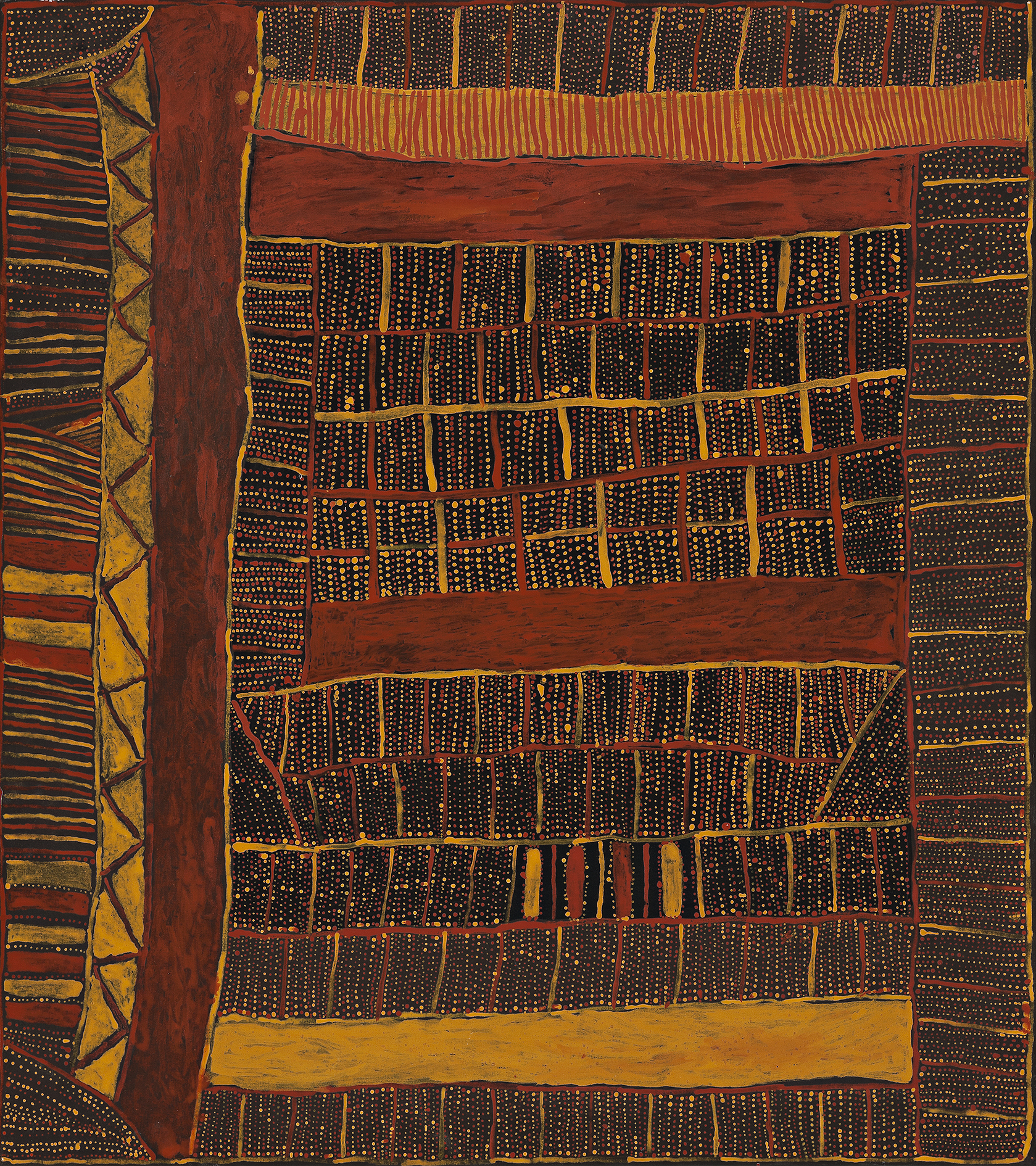 ‘Kantilla’s poetics of intimacy taught the art world that quality is not contingent upon scale. Her means were few: she needed only dots, lines and ochre colours to create infinite variations of rhythm, balance and beauty, of which no two are exactly alike. Kantilla’s works, like those of early European modernists, do not map space or tell a story, but radically affirm the painted surface and thereby guarantee the autonomy of art. Yet the power and inwardness of Kantilla’s innovative art hinges on its deep resonance with customary ritual. For the viewer, Kantilla’s inescapably modern works are also highly charged with ceremony, with something spiritual and untouchable.