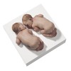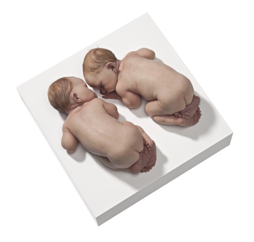 These small, painstakingly mimetic sculpted twins exist in an intimate and fragile symbiosis, frozen in time and space. The jaw-dropping exactitude now expected of hyperrealist sculpture has only become technically achievable in the last ten years, facilitated by innovation in synthetic materials such as fibreglass, silicon and resin, an art truly of our time. Photorealism and hyperrealist sculpture are almost unparalleled in their ability to fascinate spectators, however this popularity is a double-edged sword. While it is remarkable to capture so quickly the viewer’s attention, it is a separate challenge to maintain this attention long enough to channel it toward pertinent conceptual foundations. Jinks is one of the few artists to achieve this feat. The conceptual foundation of his work is closely linked to his subject matter; he examines the human condition, and in particular the processes of growth and transformation as we navigate from womb to tomb. In addition to revelling in the minute details of tone and texture inherent in the human body, Jinks’ work encourages spectators to experience instinctive emotions: empathy, awe, fear. By subtly changing the scale of his sculptures, Jinks draws attention to our ultimate vulnerability and the transience of our physical bodies, while also providing a lens through which to avoid pure representational duplication.