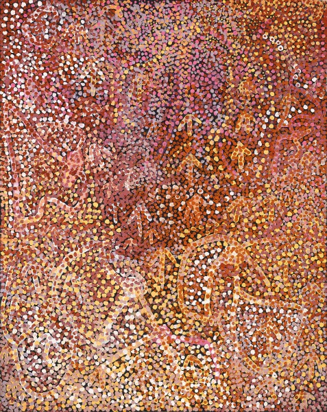 From the very beginning ‘Emily Kngwarreye was noticeable for the dedication and passion which she applied herself… her work stood out for its spontaneity and verve’4,and her legacy in the history of twentieth century Australian art cannot be overstated. The body of work produced in the final stage of her life radically altered the way in which we view and appreciate modern Aboriginal art. Stemming from a lifetime of making art, where the visual and performative aspects are as important as language, her paintings reveal a deep affinity to country and a devotion to women’s ceremony in song, dance and the ceremonial painting of bodies. Celebrating the ever-changing seasonal variations in her homeland of Alhalker and the related spiritual and domestic obligations to country, Kngwarreye’s painting demonstrates the interconnectedness of life, landscape and culture.