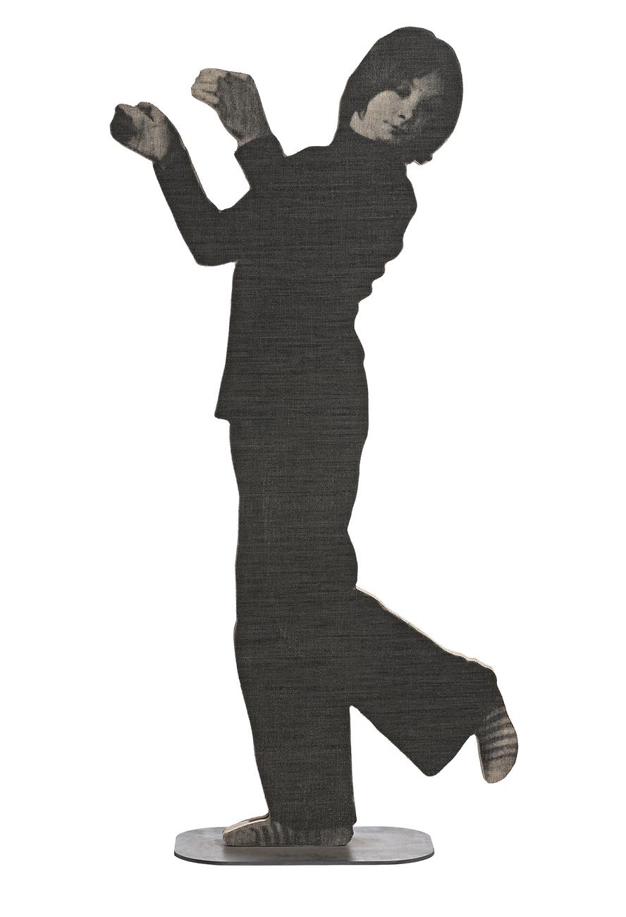 screen printed jute on plywood and steel base