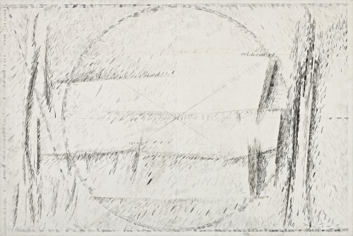 oil, pen, ink and pencil on canvas