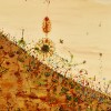 Wanting ‘to really come to terms with the experience of a total landscape’, Olsen uses his drawn and painted lines to lead the viewer on a journey through the natural environment rather than just presenting a view to be admired from a distance.2 Depicted from above, below and within, his landscapes communicate the wonder of the natural world and the interconnectedness of all living things. While the title of this painting suggests a distant view – as indeed does the dramatic diagonal horizon line – the delicacy and detail of Olsen’s depiction transports us down close to the earth where we can perceive what he describes as ‘a certain mystical throbbing throughout nature.’3