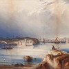 This is a quintessential Sydney view painted by one of the best known colonial artists. The vantage point is from Milsons Point looking directly across the Harbour to Fort Macquarie, built during the term of Governor Macquarie as a defence, but never used, with Sydney Cove and warehouses and ships’ masts to the right. The Sydney Opera House is now on the site of Fort Macquarie. As well as a celebration of the magnificent harbour setting, the painting also documents the flourishing settlement.