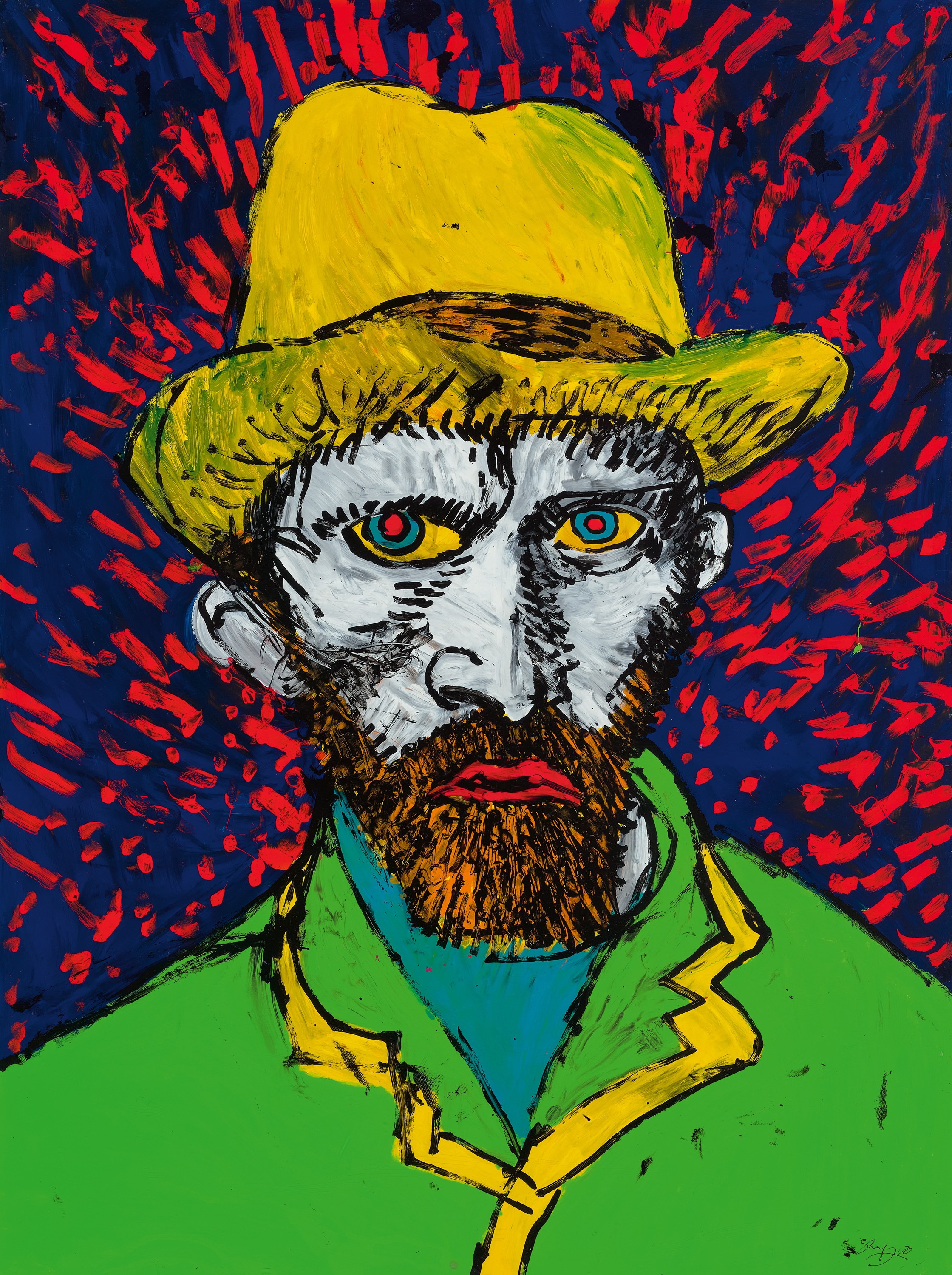 In May 1888, Vincent Van Gogh rented a house at Place Lamartine in Arles, which he described as yellow with green shutters. He called it ‘The Yellow House’ and dreamt of it being a place where he and other artists could live and paint together. In the early 1970s in the spirit of Vincent’s Yellow House ideal, Sharp established The Yellow House Artists Collective in the former Clune Gallery on Macleay Street, Potts Point. Named after Van Gogh’s dream of an artistic retreat, artists such as Brett Whiteley, George Gittoes, Bruce Gould, Philip Noyce amongst others collaborated and presented experimental works in every genre from painting and sculpture to film and happenings. In a way, The Yellow House Artists Collective was in itself an artwork; it was a functioning sculpture, an event, a happening and a heaving series of murals all rolled into one. It could be considered as Sharp’s magnum opus and a befitting homage to his artistic hero. Vincent, 1970, represents a rare work by one of Australia’s best-known exponents of pop art, and provides a window into the world of Martin Sharp and his echoing of Vincent van Gogh’s unwavering belief that we can change the world for the better through art.