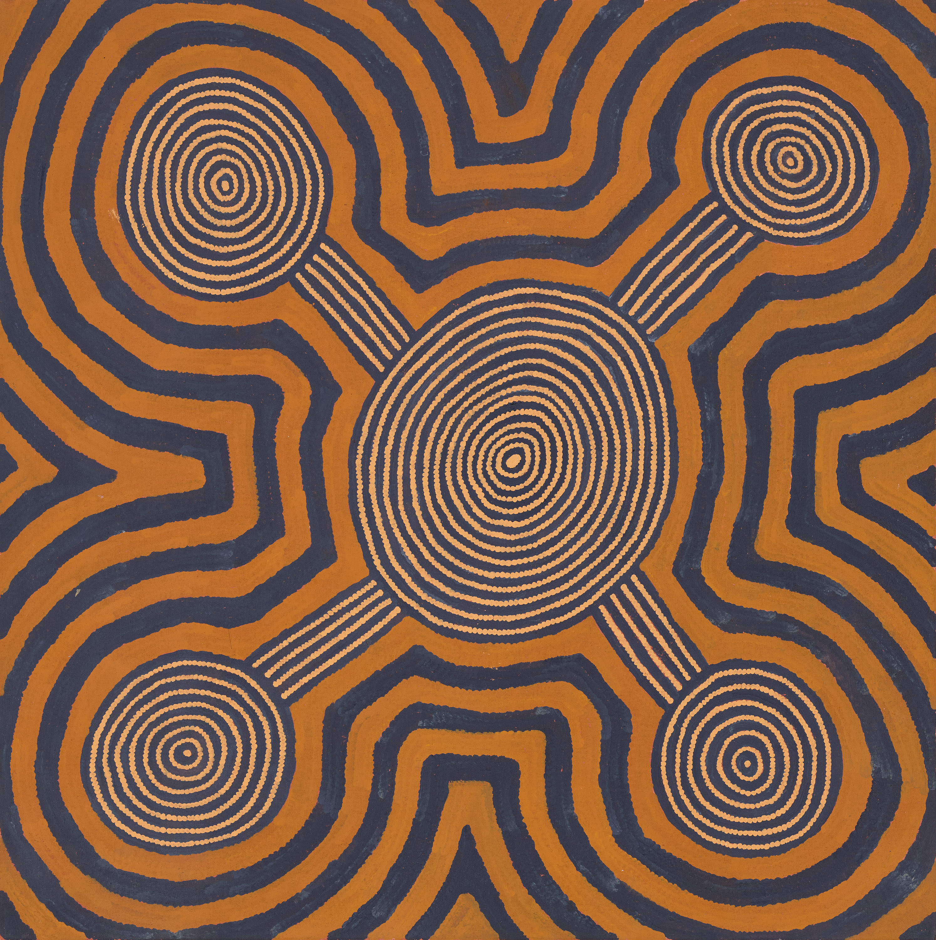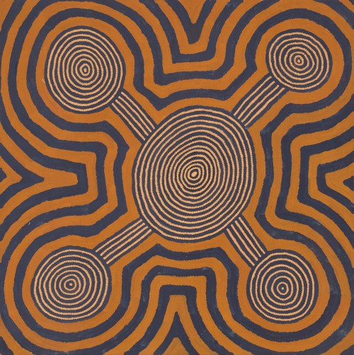 This work is accompanied by a certificate of authenticity from Papunya Tula Artists which states: ‘This painting depicts designs associated with the Water Dreaming at the site of Maparrinya to the east of Lake Mackay. This water dreaming travelled from Maparrinya to the south of Fitzroy Crossing.