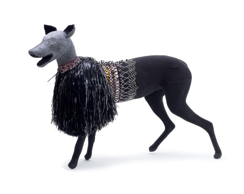 hand crocheted cotton synthetic fibre, cotton and silk embroidery thread, paillettes, glass beads, aluminium settings and jet