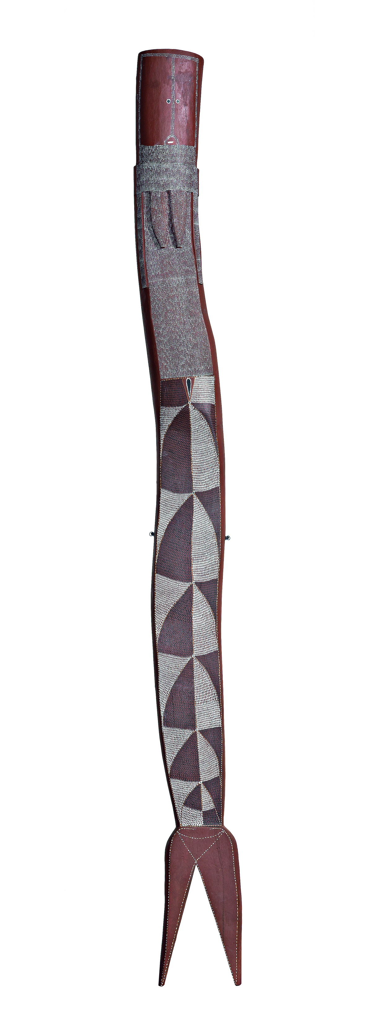 This work is accompanied by a certificate from Maningrida Arts and Culture which states: ‘Yawkyawk is a word in the Kunwinjku/Kunwok language of Western Arnhem Land meaning ‘young woman’ and ‘young woman spirit being’. During the time of the creation of landscapes and plants and animals, these ancestral heroes in human form transmutated into their animal forms via a series of various significant events now recorded as oral mythologies. The creation ancestor Yawkyawk travelled the country in human form and changed into the form of Ngalkunburriyaymi as a result of various ancestral adventures.’