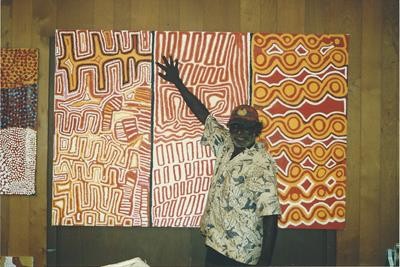 Balgo artists were not represented in the very important overseas exhibition Dreamings: The Art of Aboriginal Australia at the Asia Society Galleries in New York in 1988, as Balgo painting was only just starting to be known at that time, but then neither were Rover Thomas of the Warmun community or Emily Kngwarreye of Utopia (these two being now probably the best known of all Australian Aboriginal artists). This just underscores how very recent the development of the contemporary Aboriginal painting movement is in Australia.